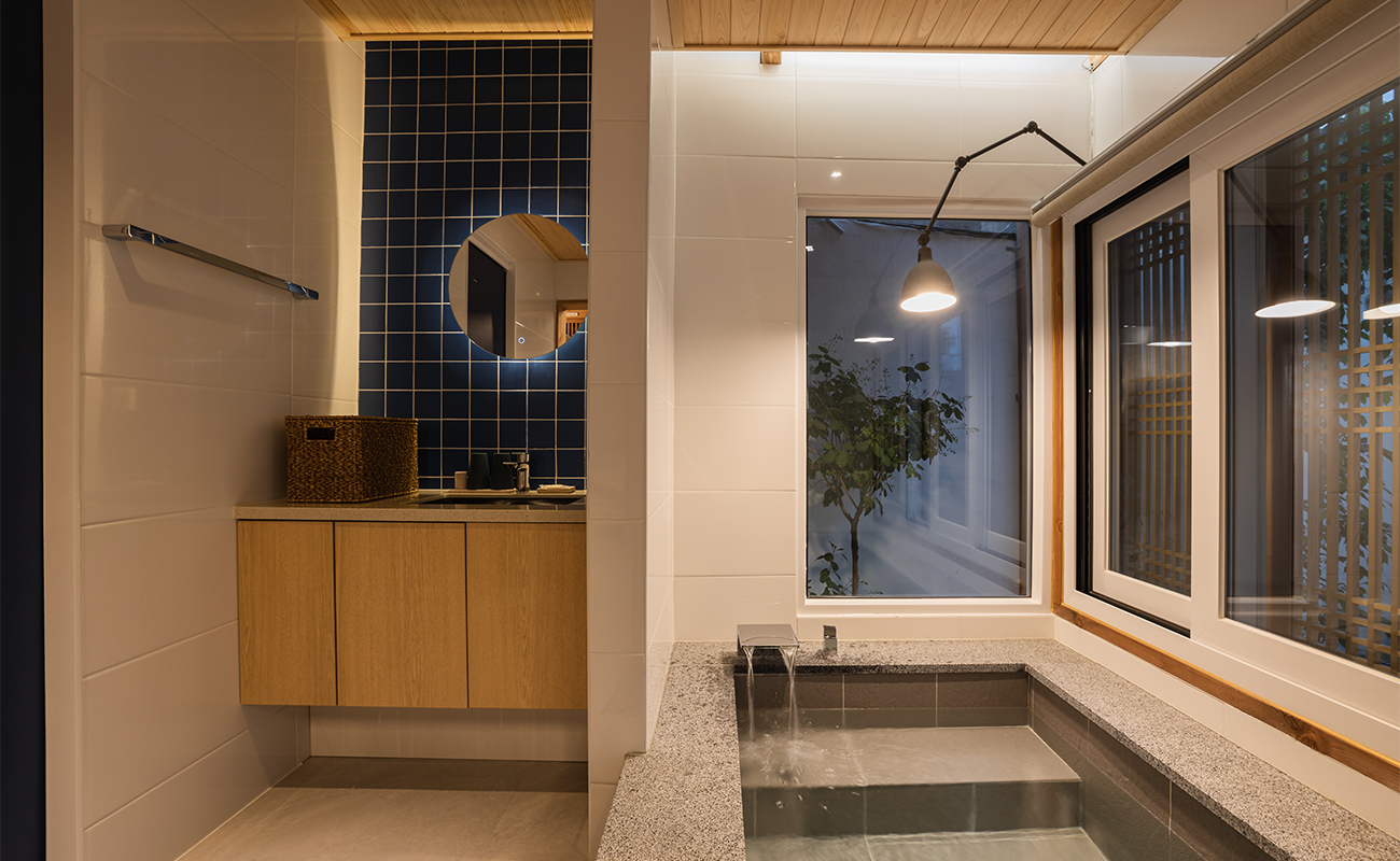 침실, 거실, 화장실, 욕조, 마당
